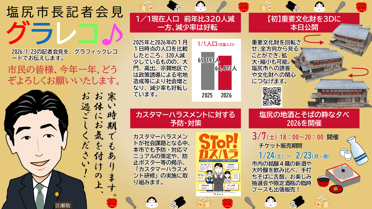 塩尻市長の定例記者会見の発表内容を、グラフィックレコード(グラレコ)で公開しています。